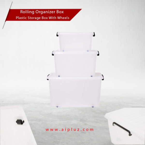Plastic rolling organizer box with wheel and lid
