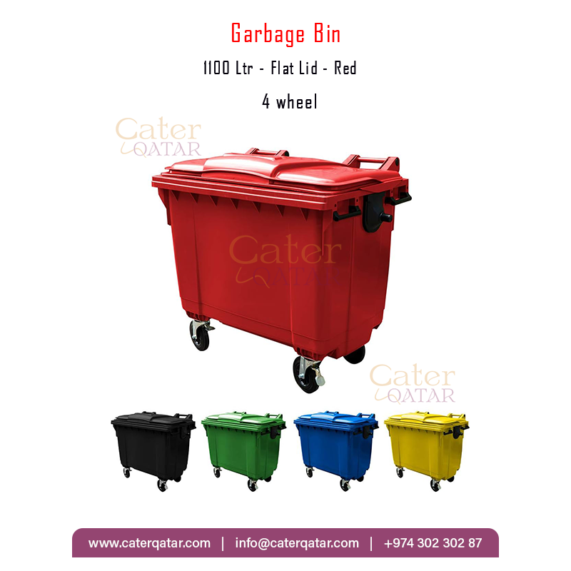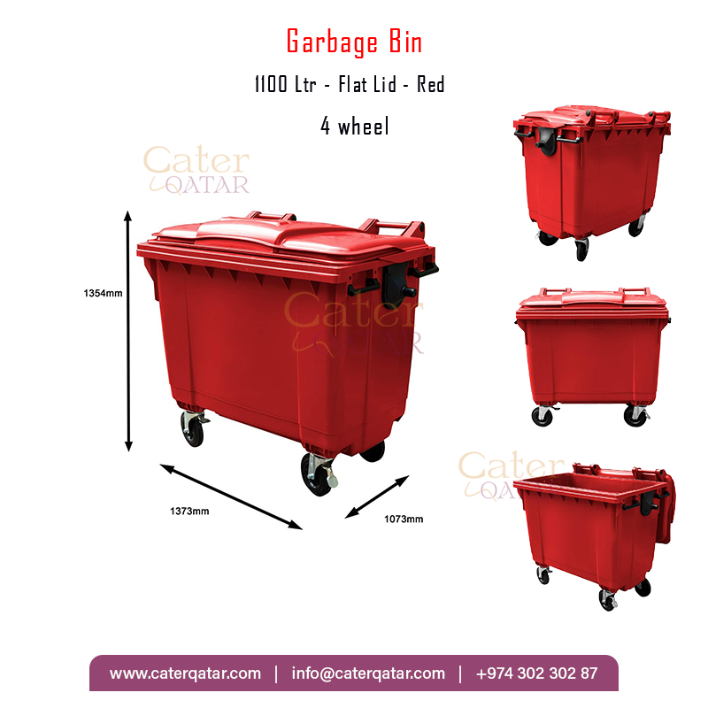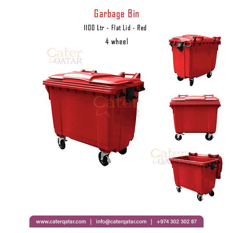 Garbage Bin 1100Ltr Red Flat Lid